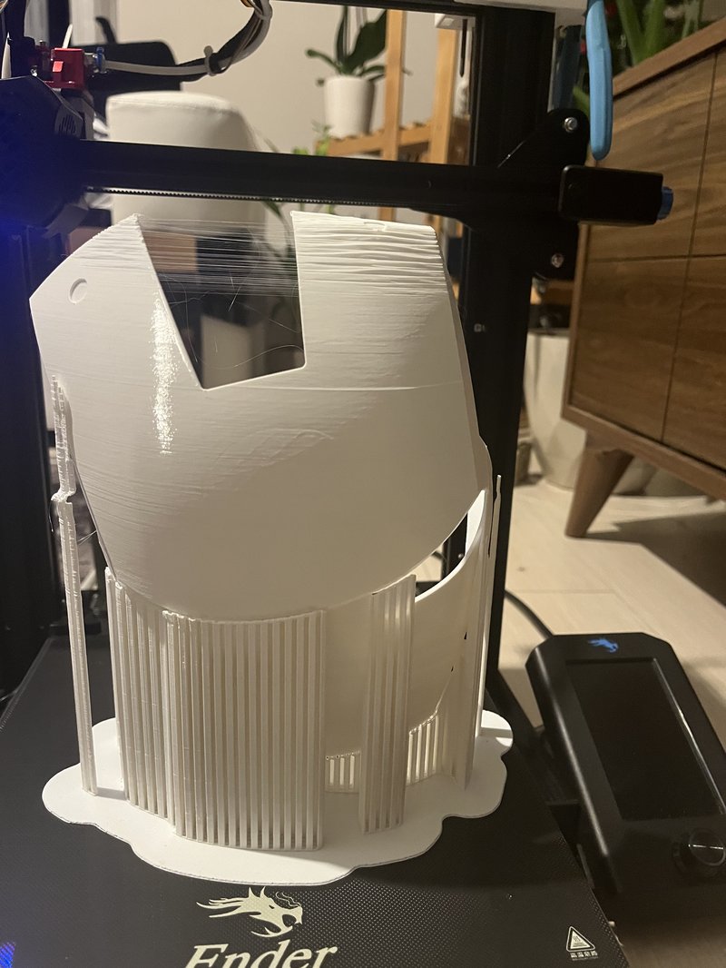 Baskı süreleri parçadan parçaya değişiyordu - bazı küçük parçalar 3-4 saat, bazıları 10 saat, bazıları 17-18 saat, en büyük parçalar 20-22 saat sürdü. Toplamda yaklaşık 1.5 hafta boyunca yazıcım kesintisiz çalıştı. Ama tabii bu süre boyunca hayatım durmuş değildi!